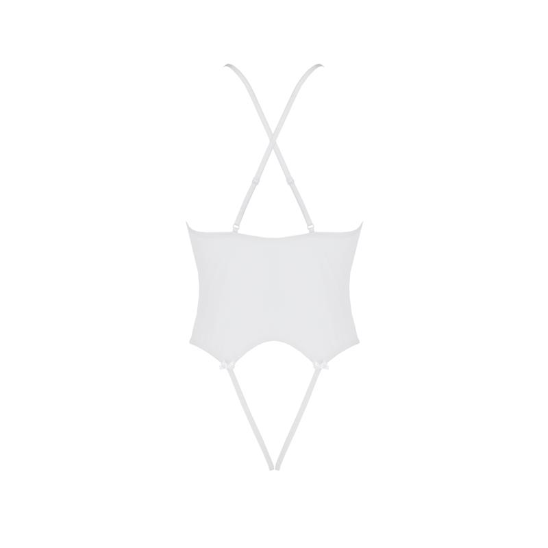 Dentro de la colección de Avanua te presentamos la línea Adelina. Con este body de color blanco semi transparente podrás disfrutar como nunca de una noche de pasión sintiéndote elegante a la vez que sexy.