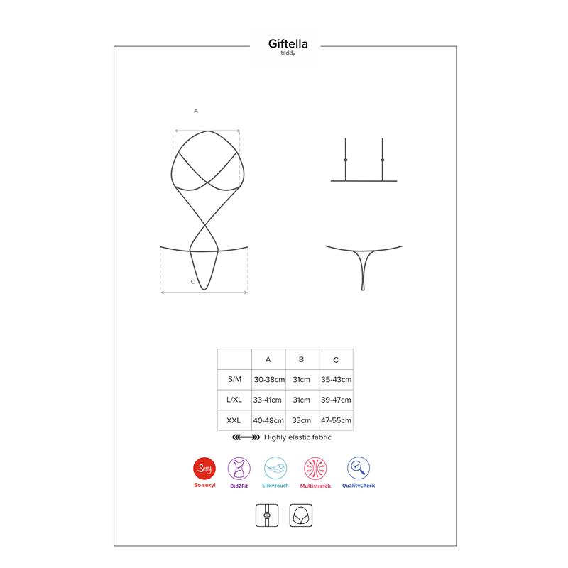 Si quieres sorprender a tu pareja con algo realmente erótico, la gama Giftella es lo que necesitas. Un tedy de color rojo intenso con una forma de lo más sensual. La parte del pecho cuenta con una forma redondeada para dar forma al pecho, mientras que el resto de la prenda son tiras del mismo todo con un lazo en la parte del tanga.