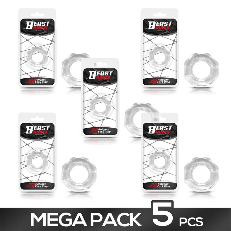 Este anillo no cuenta con la forma clásica a la que estás acostumbrado, sino que cuenta con una forma poligonal. Es súper flexible, perfecto para que te lo puedas acomodar, pero no del todo, para que ejerza esa presión que deseas para conseguir una erección potente y más duradera.